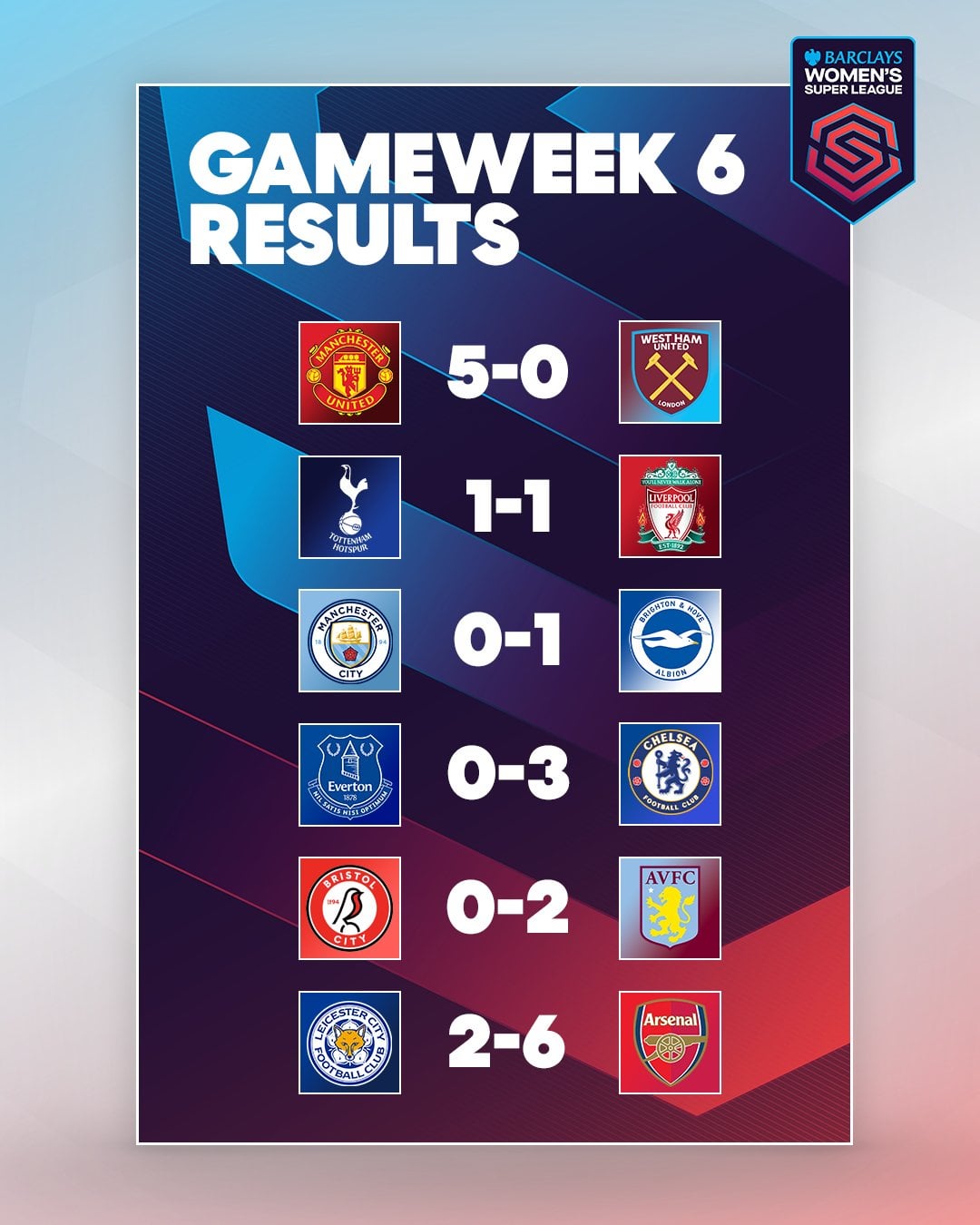 Share Facebook Twitter LinkedIn Pinterest Bluesky Threads WSL Week 6.. Results and Table by NeymarJr19 women's football women's soccer