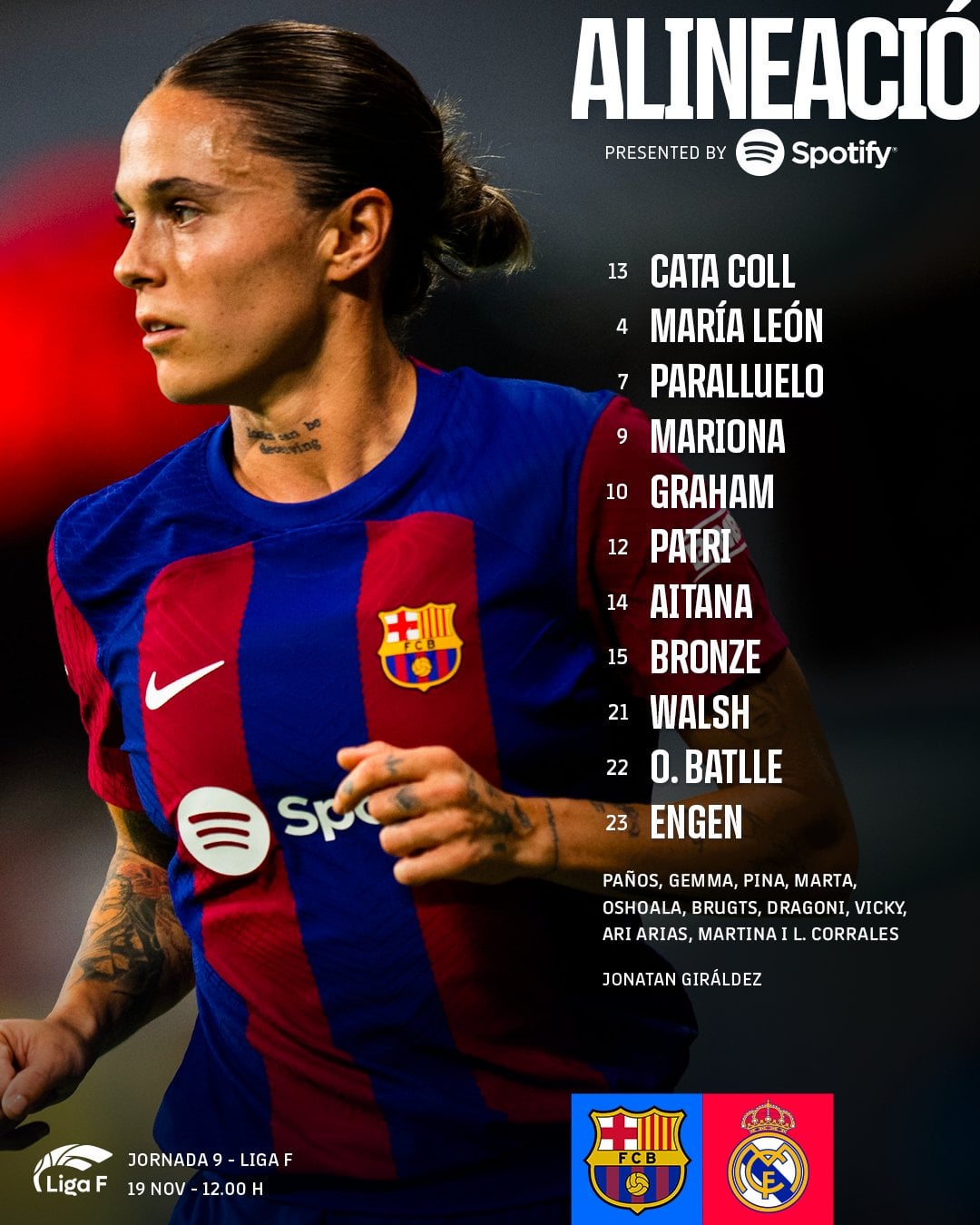 Starting XI FC Barcelona Feminí vs Real Madrid Femenino | Liga F MD9 by lucidreamerinthezone women's football women's soccer