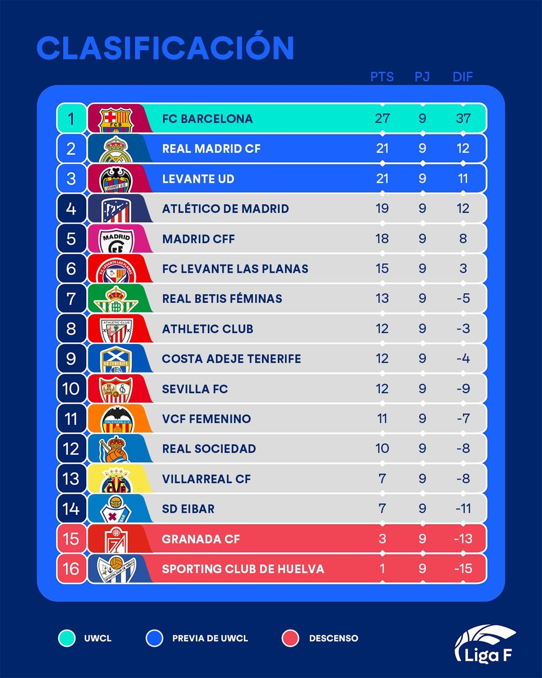 Liga F Results and Standings | MD9
