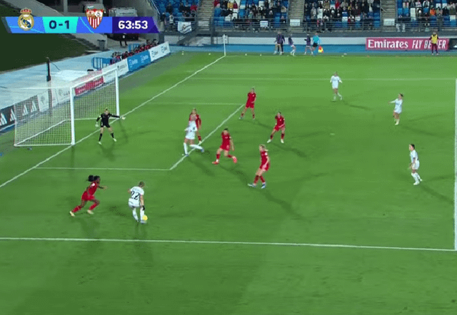 This was disallowed for offside in Real Madrid’s game vs Sevilla. But hey it doesn’t matter since Real Madrid is in the receiving end. by lucidreamerinthezone women's football women's soccer