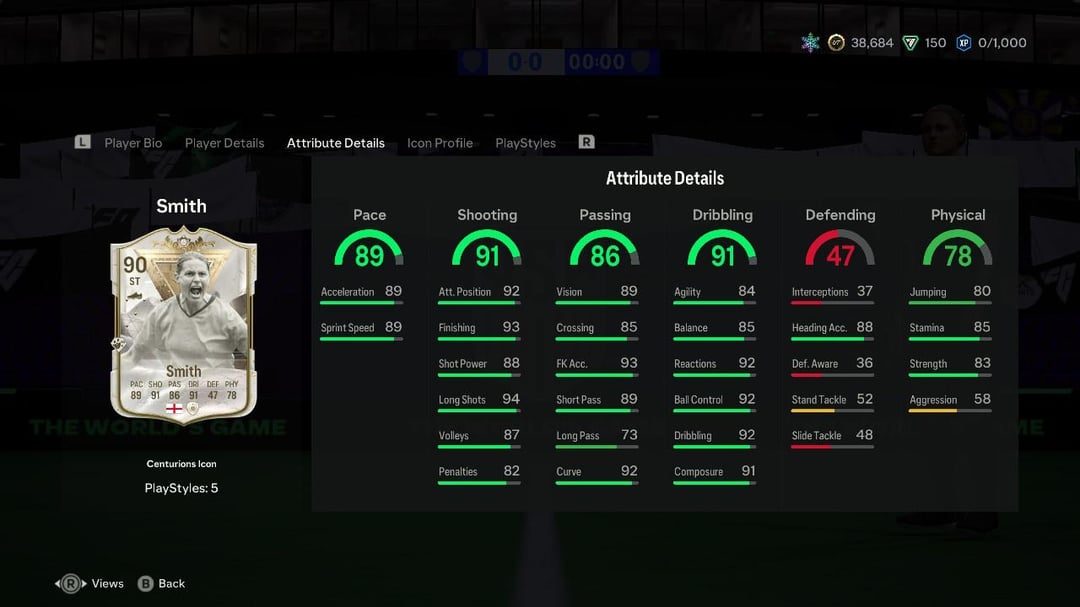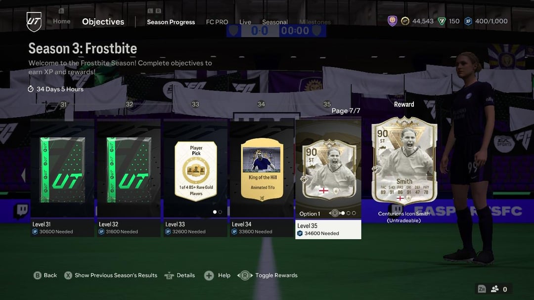 After she was featured in a Moments series this past Ultimate Team season, EA Sports has announced that Kelly Smith’s Centurion Icon card (90 OVR) can be chosen as one of the ultimate rewards for the new season, Frostbite, which started today