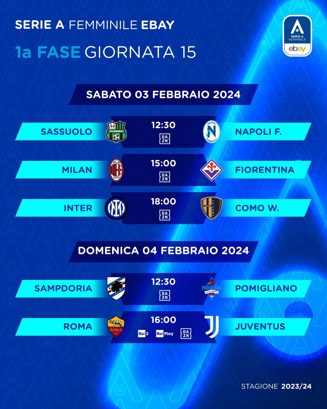 Serie A Fem round 15/18 of regular season- Fixtures and tables this weekend