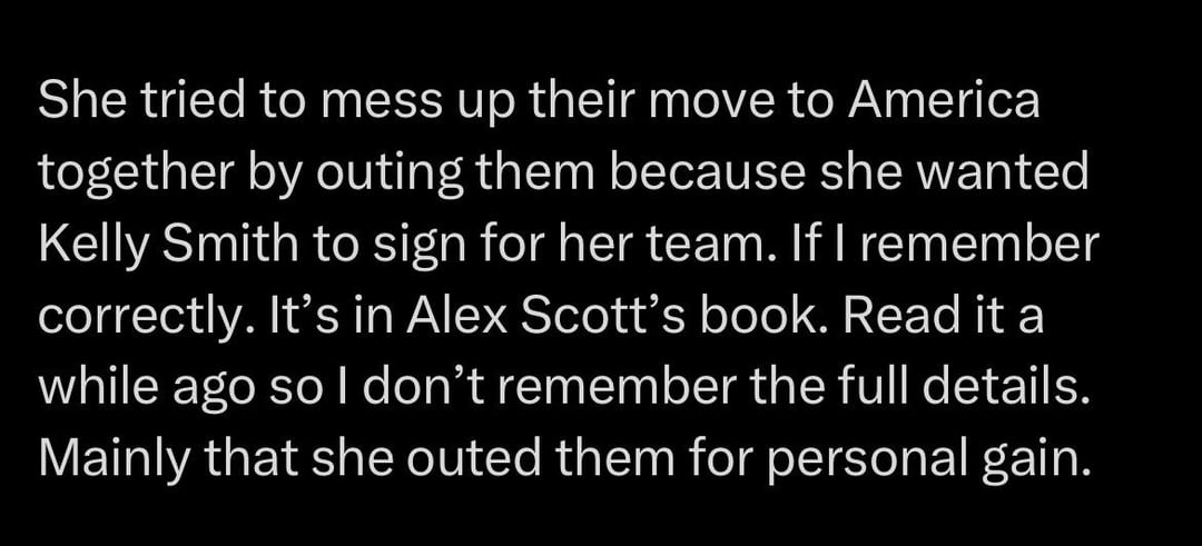 I didn’t read Alex Scott’s book so I don’t know what the drama is/was? Apparently it had something to do with the move to Boston when the NWSL was still the WPS.