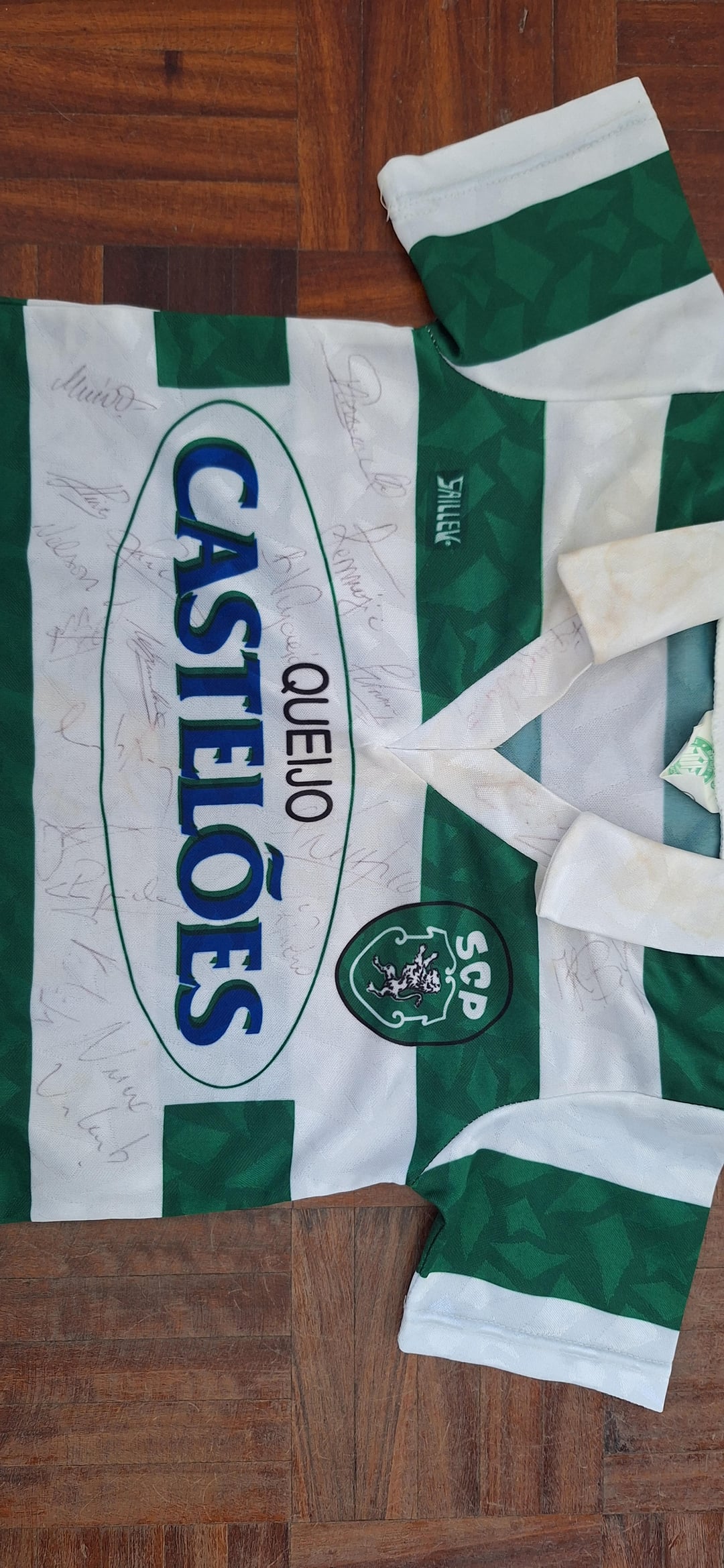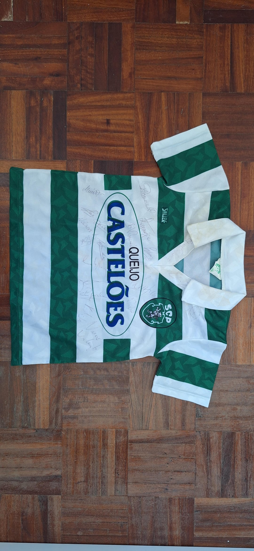 Nasci em 1994 e o meu pai ofereceu-me esta camisola do Sporting por volta dessa altura. Ele trabalha na Brisa como portageiro desde então, é a história que ele conta é que o Figo, na altura em que jogava no Sporting, passava por ele na portagem. Um dia, o meu pai entregou-lhe a camisola e pediu que a levasse para o plantel assinar. Alguém mais conhecedor consegue decifrar os autógrafos? Pensei que a malta do sub ia gostar! Abraço a todos