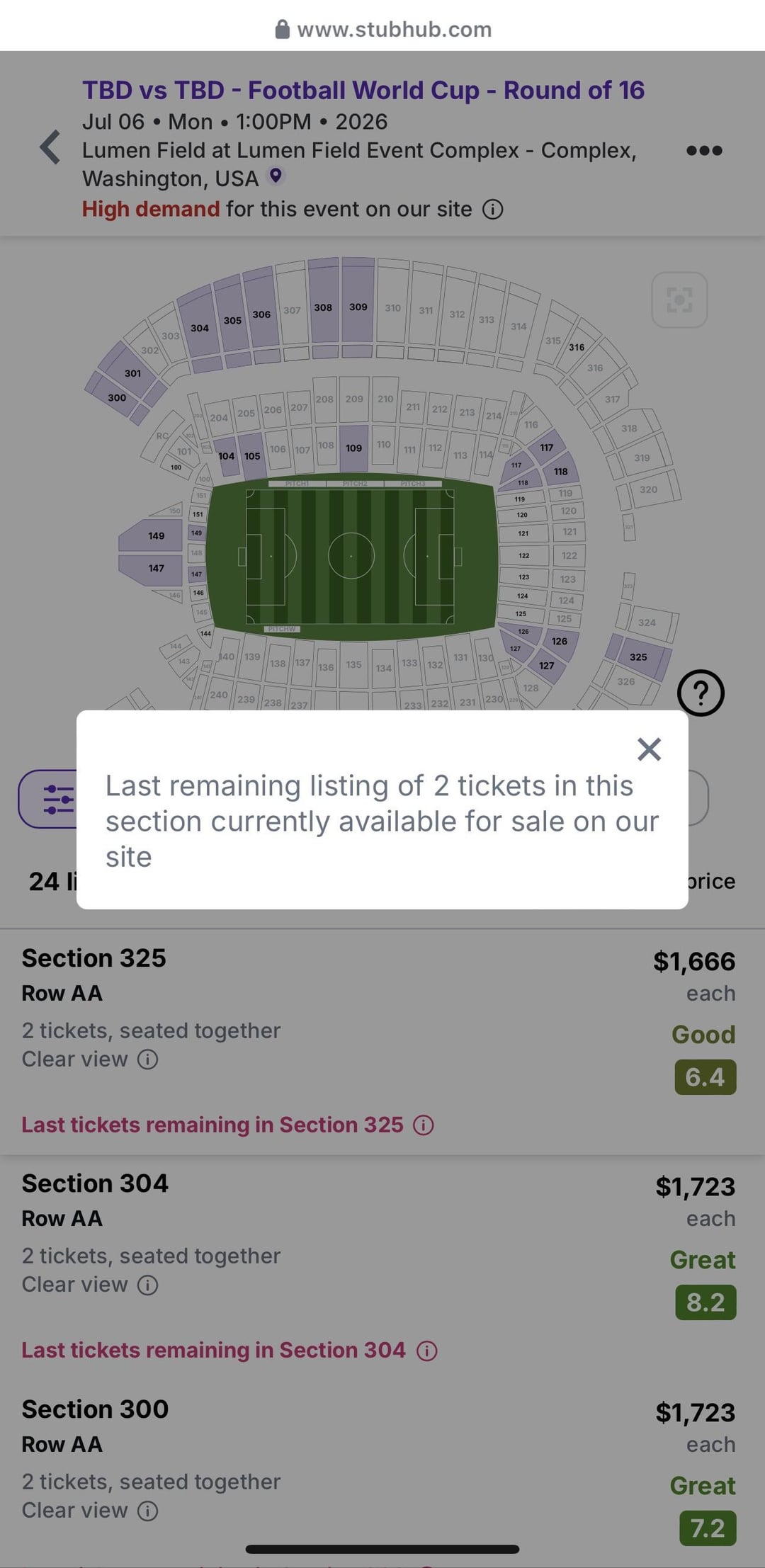I noticed StubHub advertising tickets for 26’ WC – this is, of course, not possible yet.