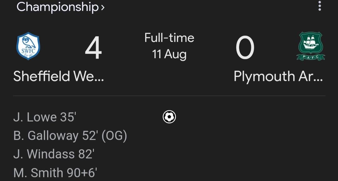 2. Also funny how after sheffiled wednesday won the league beating Plymouth on the opening day they now find themselves below them really is a funny game