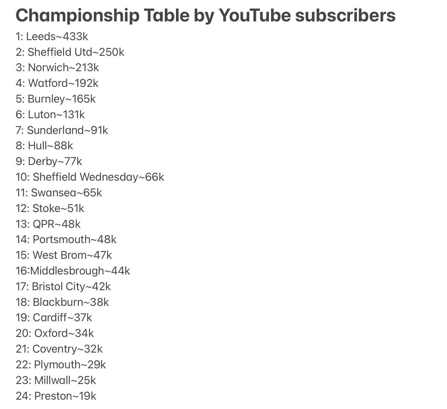 Can’t say I’m surprised Preston are bottom, a Preston North End youtube channel just *sounds* boring.