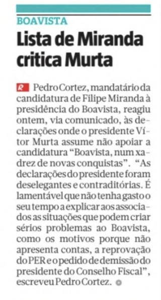 “A lista do Miranda” dá-me medo para o futuro do clube, se não aparecer mais nenhuma lista
