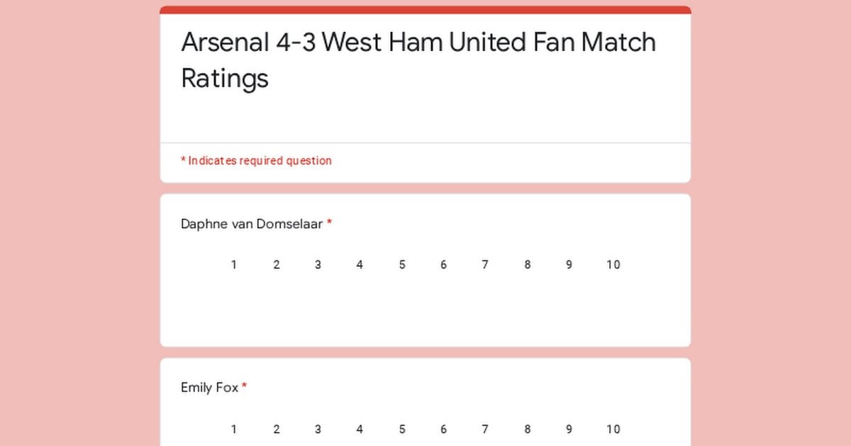 Arsenal 4-3 West Ham United Fan Match Ratings (Survey) by shelbyj arsenal wfc Arsenal Womens Football Club
