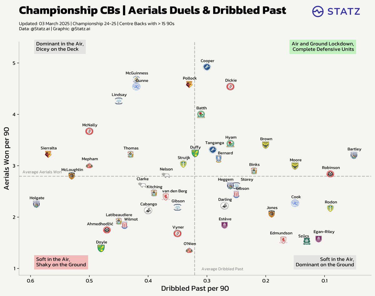 The midfield plays a massive part in how much you are exposed to as a centre back, such stats need to be considered in that context. My own club for example, I think it is inarguable we have the best midfield in the division and they simply dominate possession whilst pressurising opponents. Struijk’s job therefore is considerably less taxing than Cabango’s etc etc.