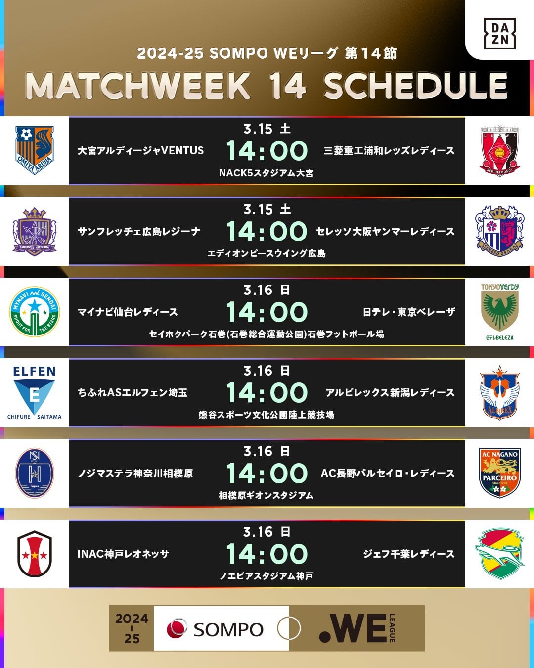 WE League – Matchweek 13 results, standings, fixtures for matchweek 14 and record attendance by Stayfou women's football women's soccer