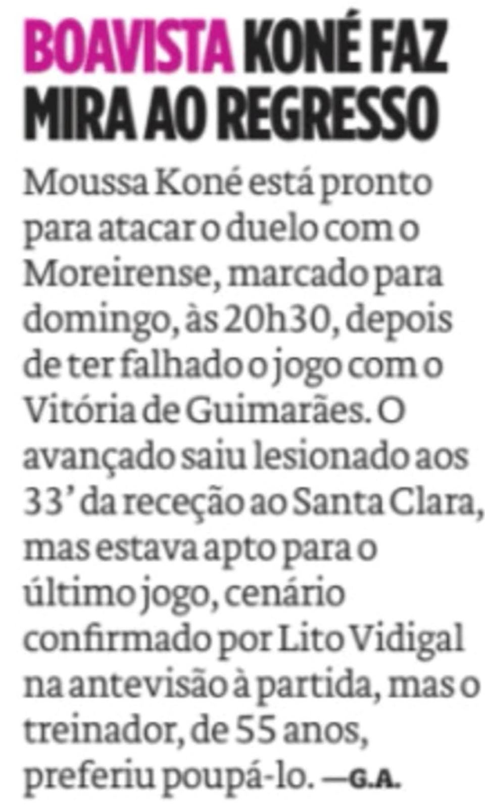 1. Pelo último clube onde passou ter acabado a época a meio da tabela da segunda divisão Turca, não tinha assim tantas expectativas para o Gboly. Mas tenho gostado bastante do que vi até agora, tanto ele como o Diaby estiveram bem no último jogo e espero que sejam titulares em Moreira no domingo.