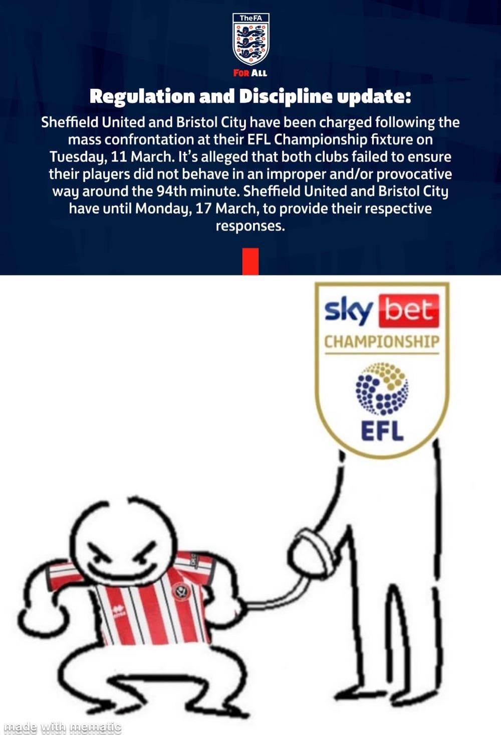 5. 10 point deduction surely. In all seriousness Sheffield Utd always at it. Must come from Wilder.